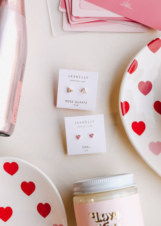 JaxKelly | Tiny Pink Opal Heart Gold Earrings