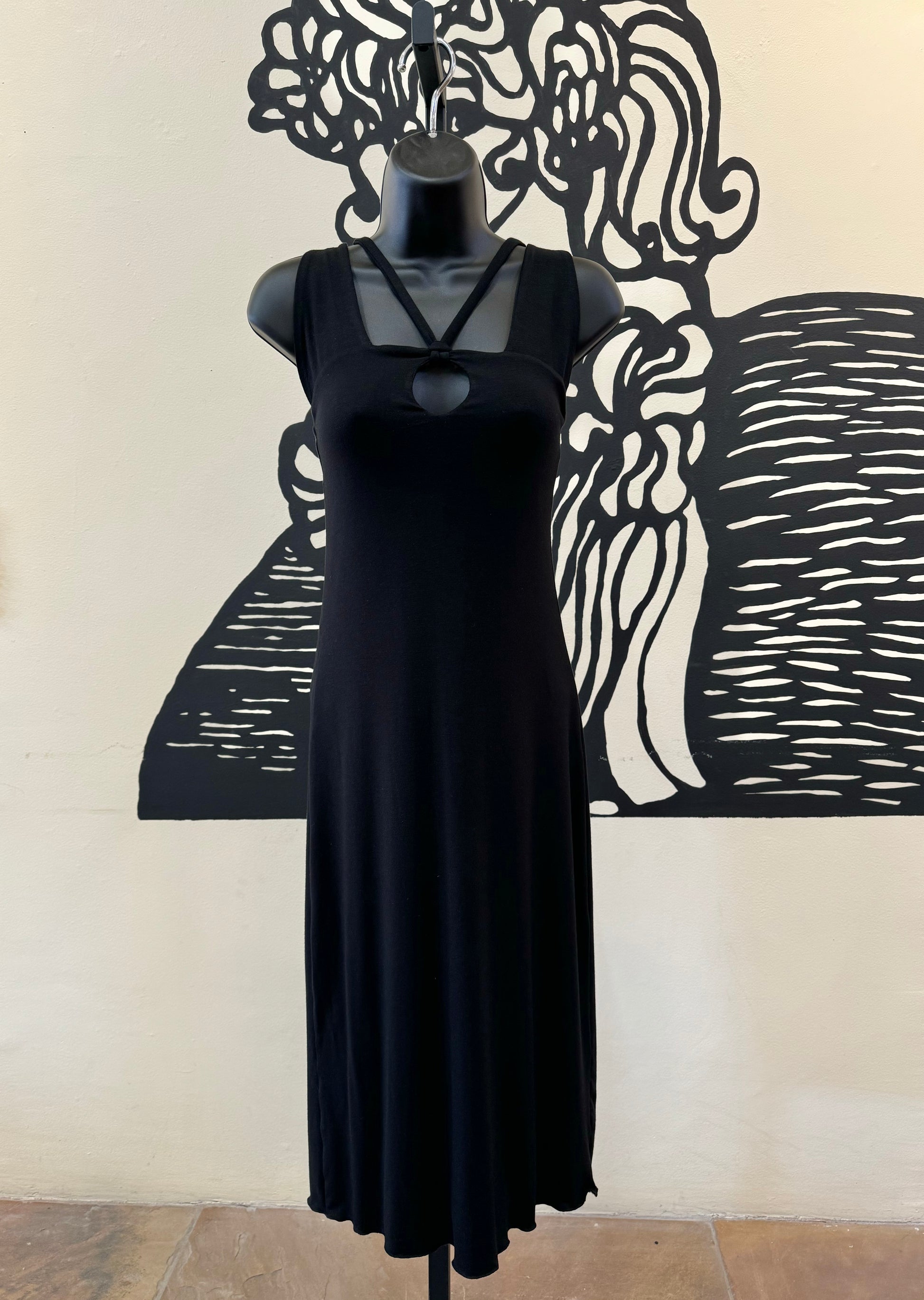 Experience versatile style with the Bucko Antoinette Dress in black. This dress can be worn two ways, with a keyhole in the front for a sultry feel or in the back for a more conservative look. Perfect for any occasion, this dress offers endless possibilities. Handmade by our local designer, Christa