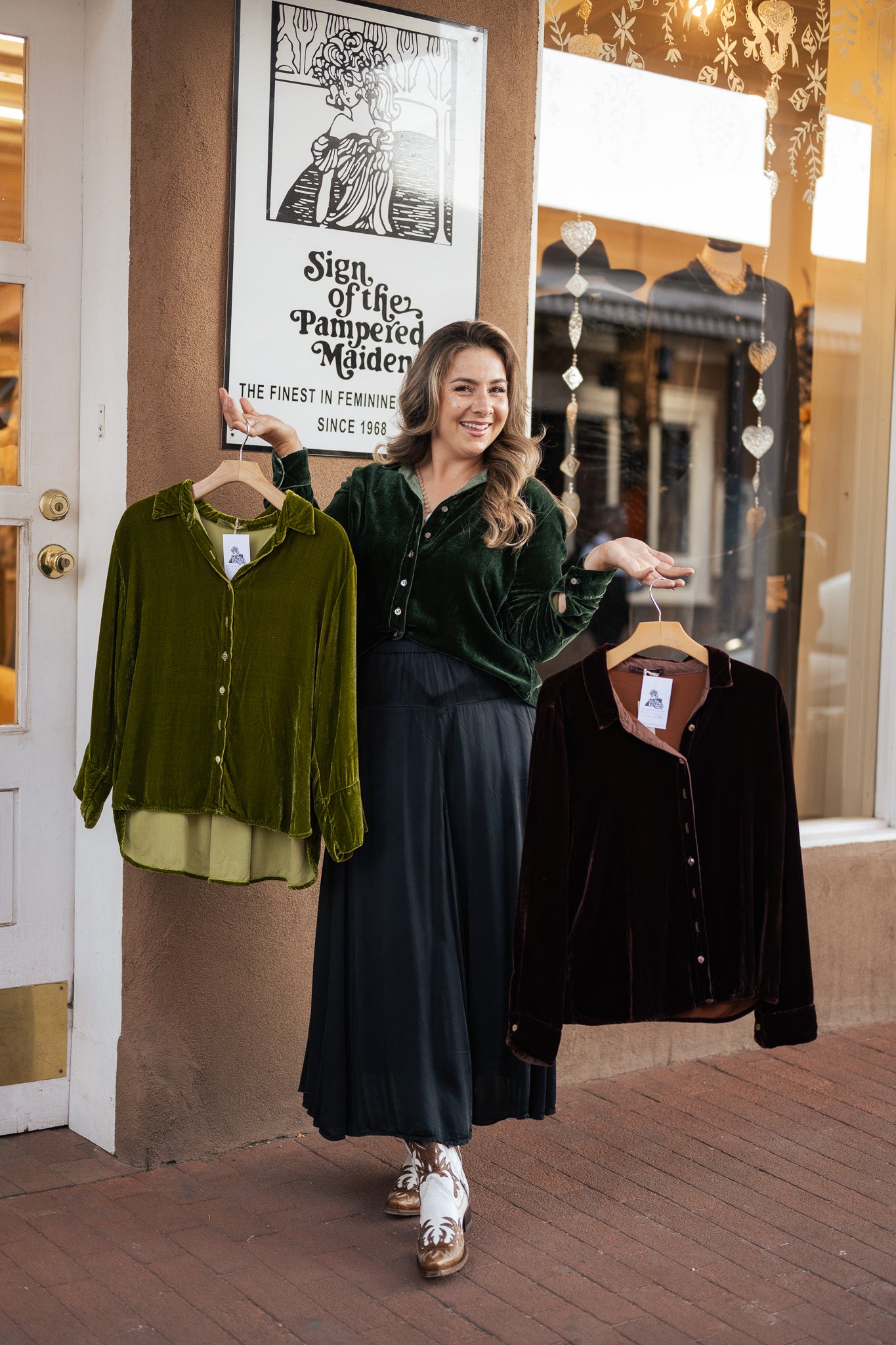 Elevate your wardrobe with this luxuriously crafted fitted shirt, where sumptuous velvet meets refined elegance. The sophisticated blend of rayon, silk, and nylon creates a fabric that drapes beautifully while maintaining its shape, offering both comfort and a polished silhouette. Perfect for transitioning from day to evening, this piece brings an understated luxury to any ensemble. The soft, tactile velvet texture adds dimension and visual interest, making it an effortless choice for those who appreciate quality craftsmanship and timeless style.