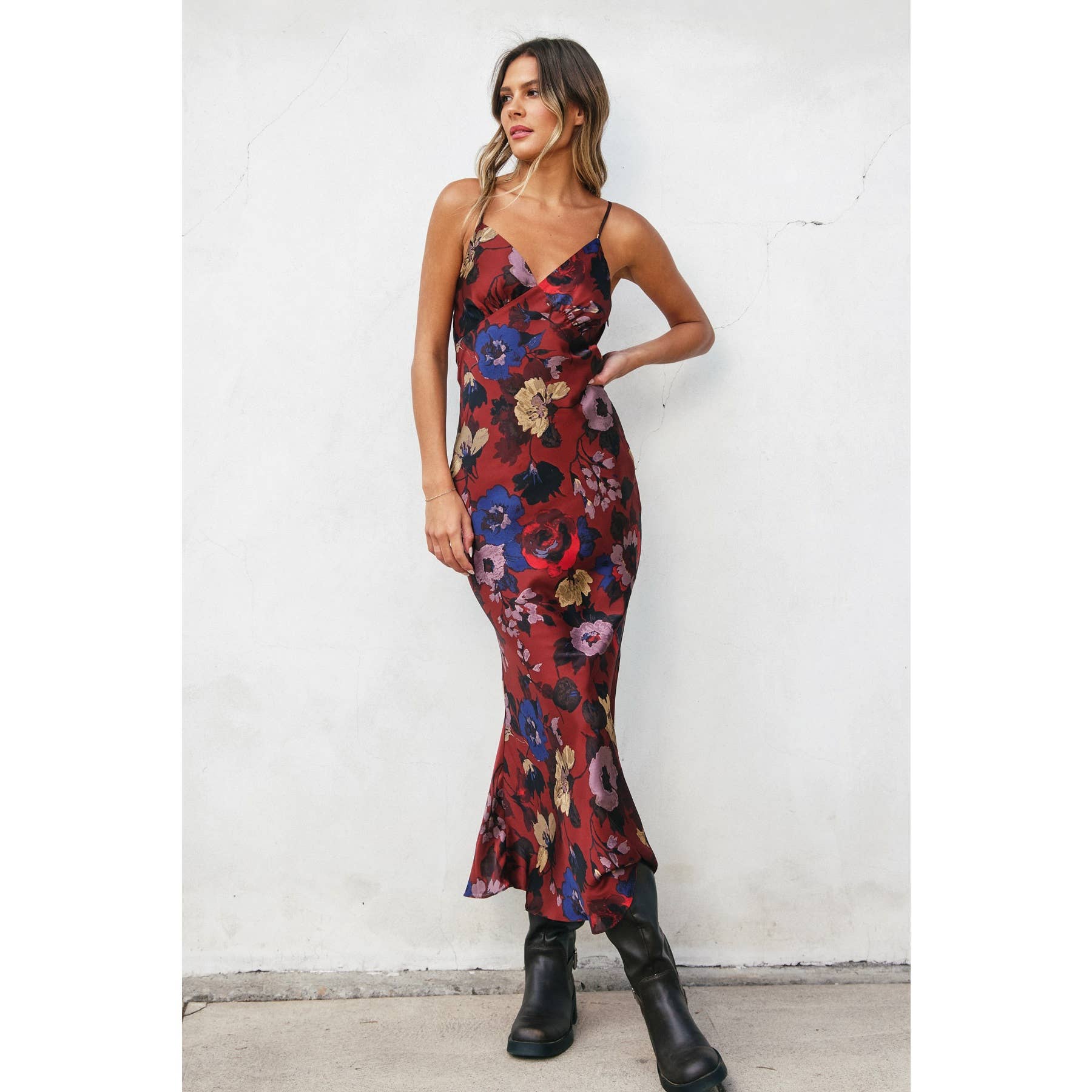Elevate your evening with this stunning floral satin maxi dress from Dress Forum. The sophisticated V neckline and chevron underbust seam create a flattering silhouette, while the dramatic open cowl back adds an unexpected touch of allure. Adjustable shoulder straps ensure a custom fit, and the hidden side zipper provides seamless closure. Fully lined for comfort and movement. Perfect for special occasions and upscale events.