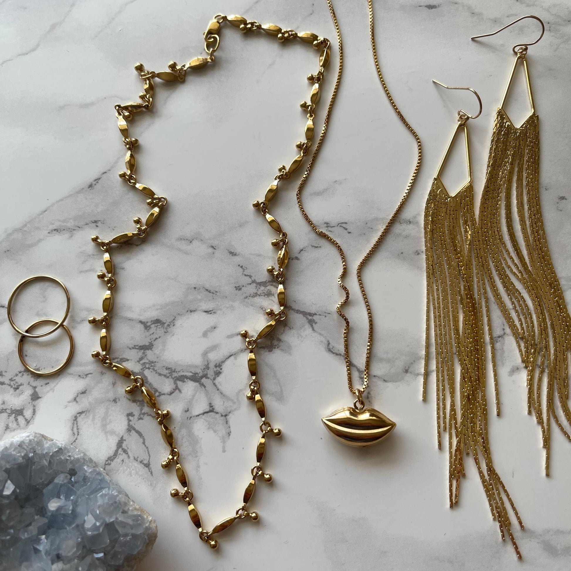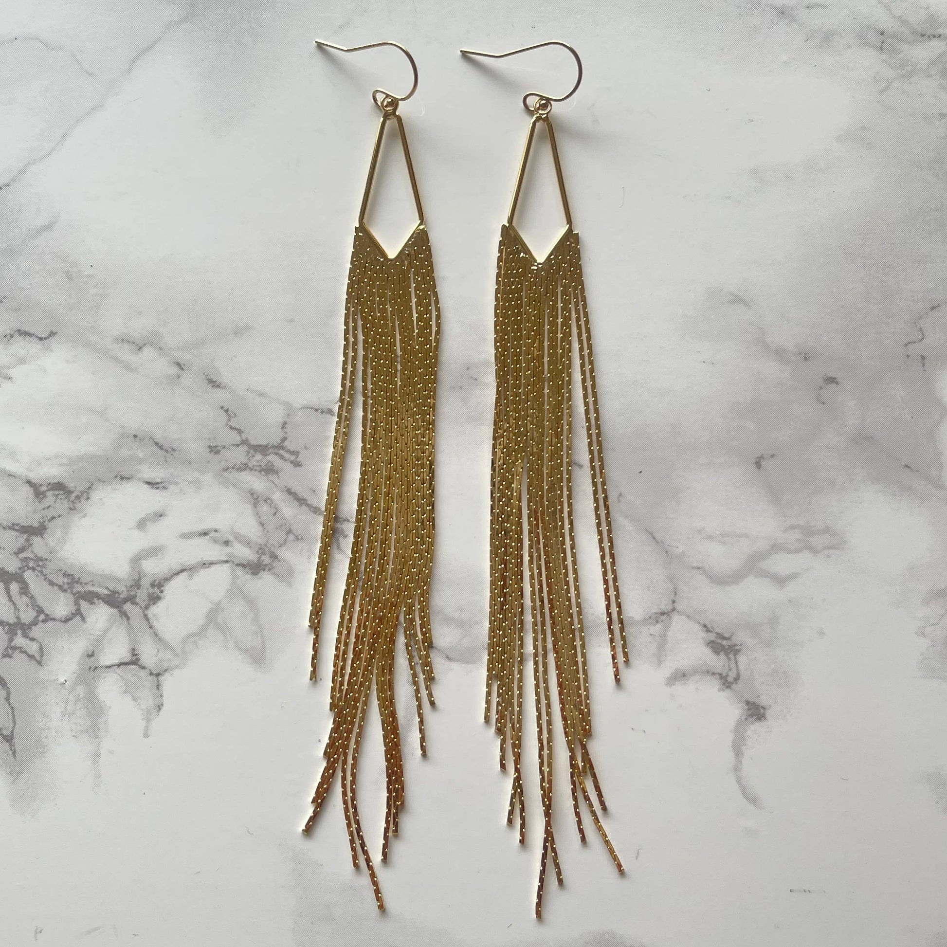 Yeah, necklaces are cool, but sometimes your ears want to have some fun! These are an ear party all on their own- long shimmering chains that beg to swish back and forth on a dance floor, or in the sunshine at the beach.