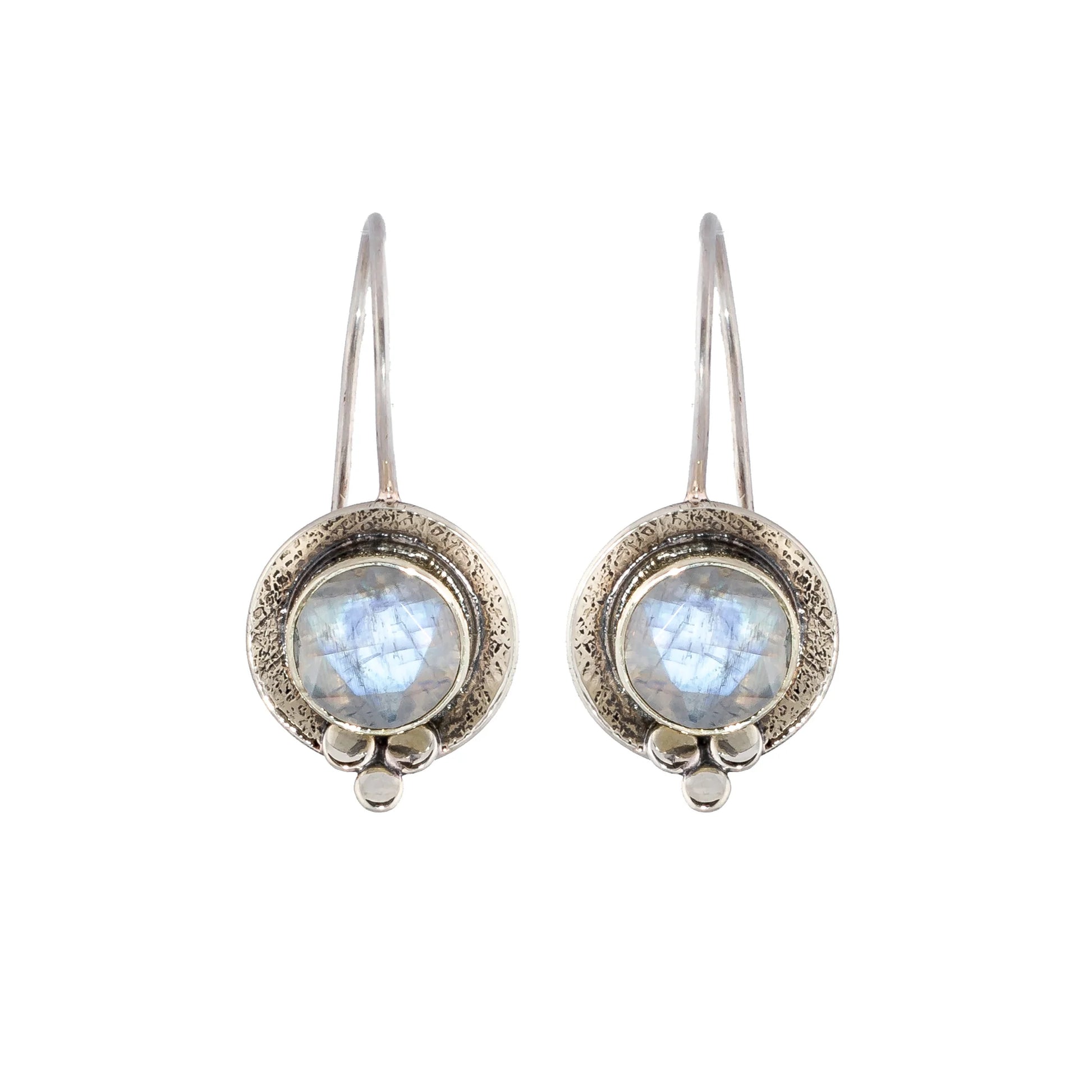 Sterling Silver hook with hanging scooped disc and faceted moonstone.