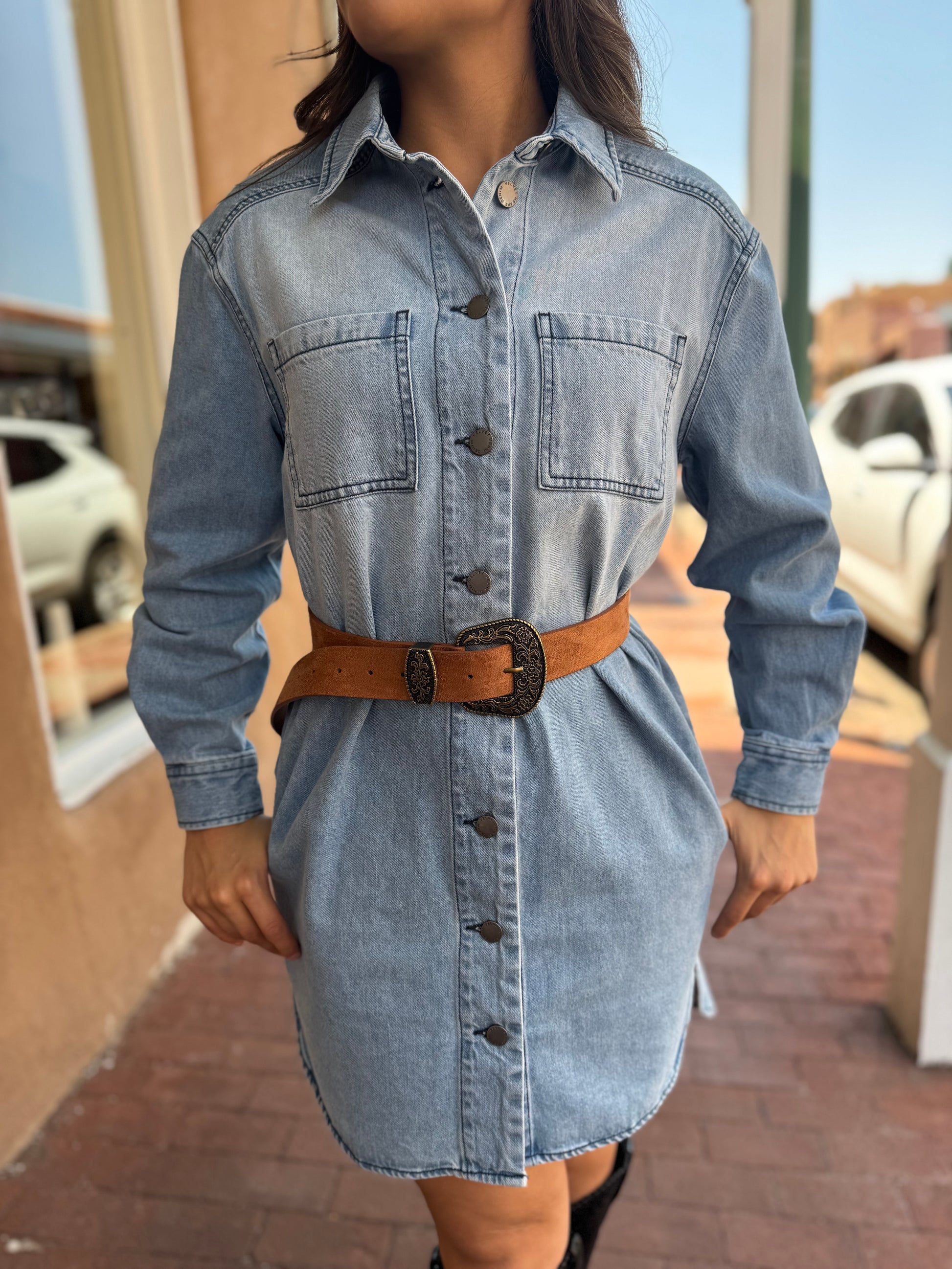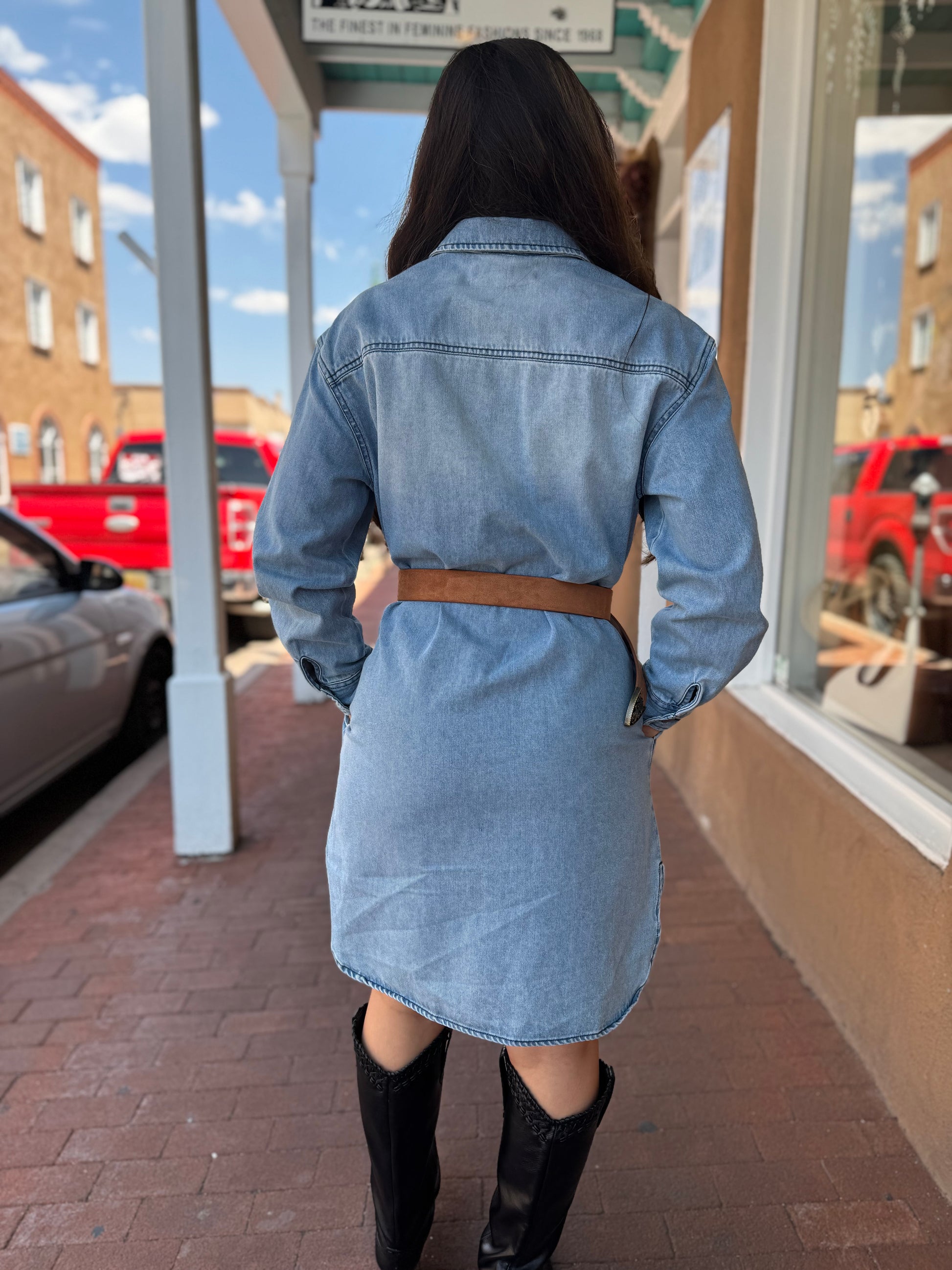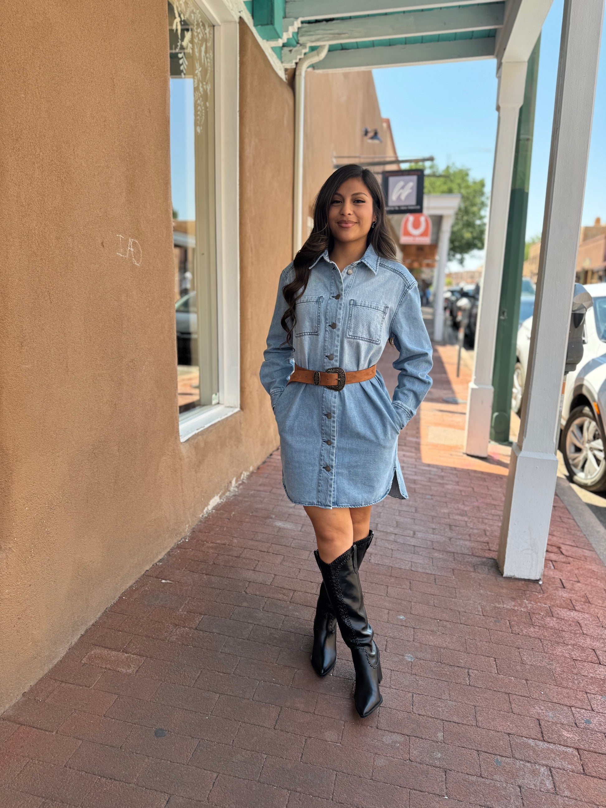 This Velvet Heart Ellison Dress features a classic denim fabric with long sleeves and a button-down front, complemented by a crisp collar. Its timeless design offers both comfort and style, making it a versatile addition to any boutique wardrobe. Perfect for layering or wearing on its own, this dress blends casual ease with polished details.